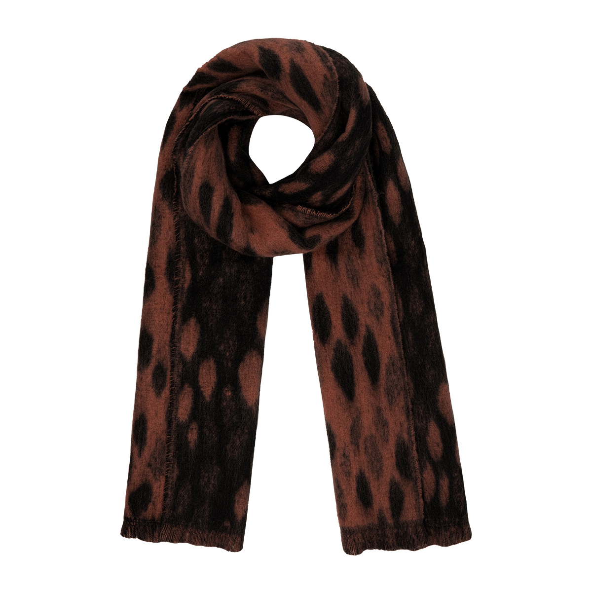 Gave geprinte wintersjaal in bruin/zwart. Ook verkrijgbaar in camel!