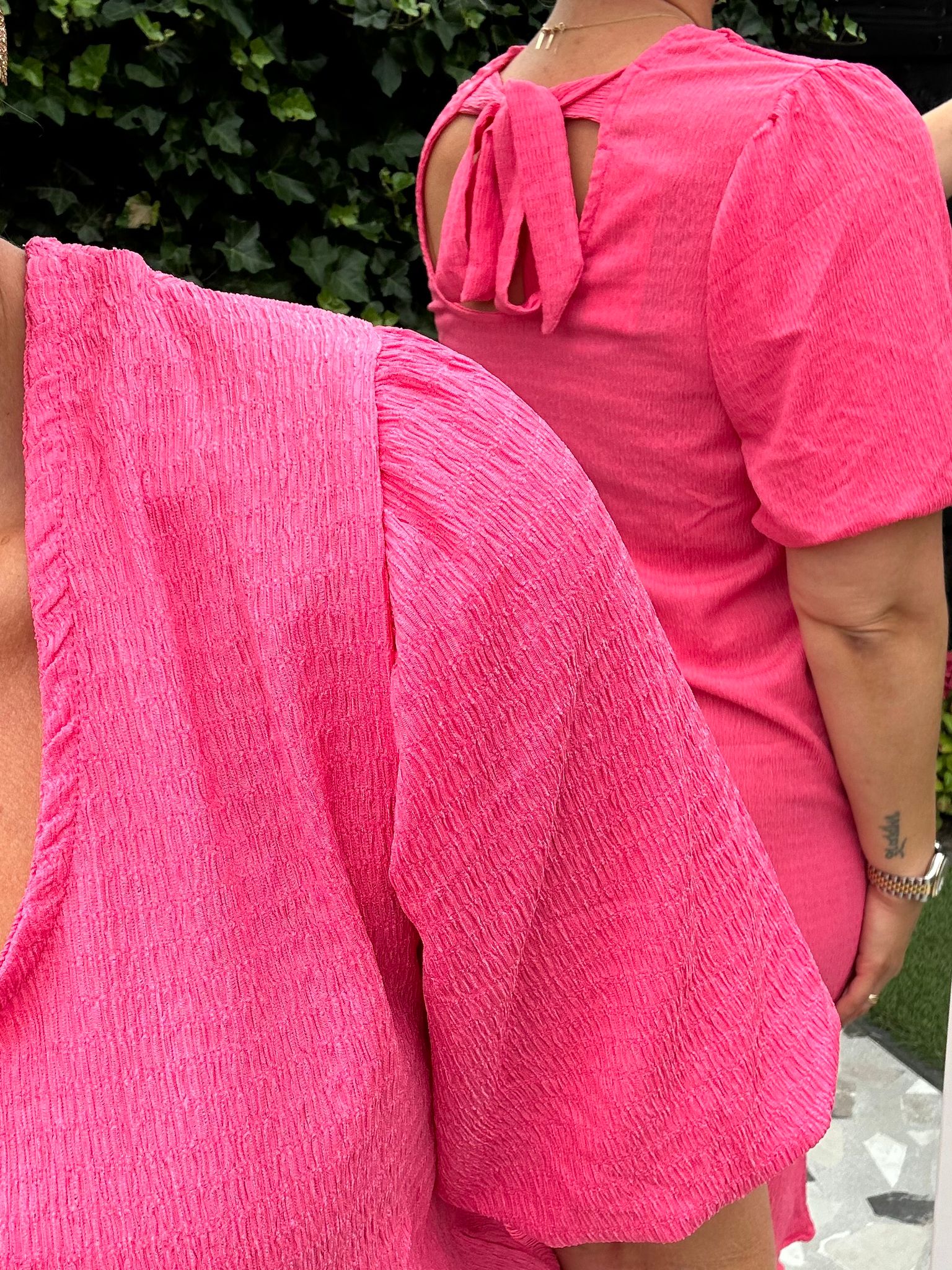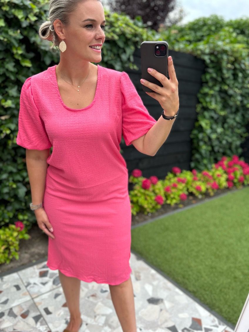 Heerlijke rechte jurk met gevoerde pofmouw, strikdetail op de rug en splitje aan de zijkant. De jurk past mooi tot maat 38. Verkrijgbaar in 3 kleurtjes; mint, roze en lavendel.