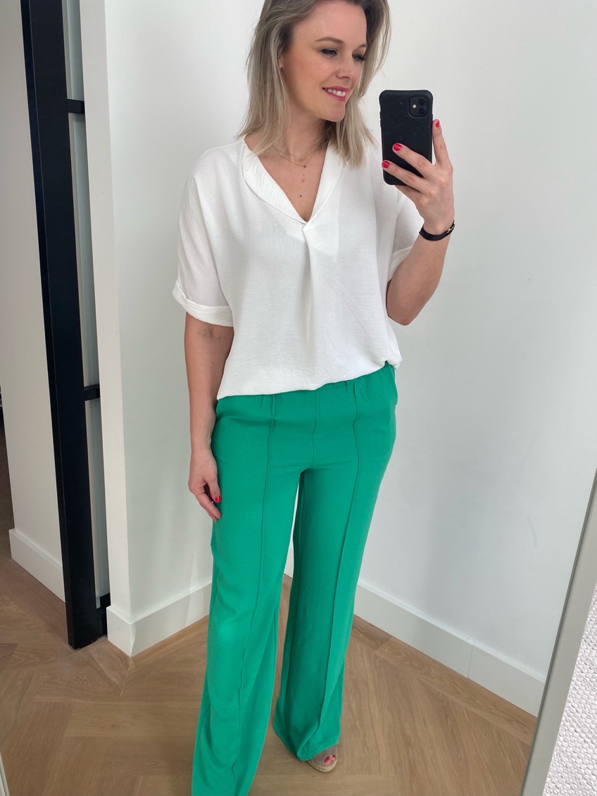 Heerlijke broek van soepel vallende zomerse stof. Perfect te combineren met de bijpassende blouse voor een gave outfit! One size, de broek pas mooi van S t/m L.